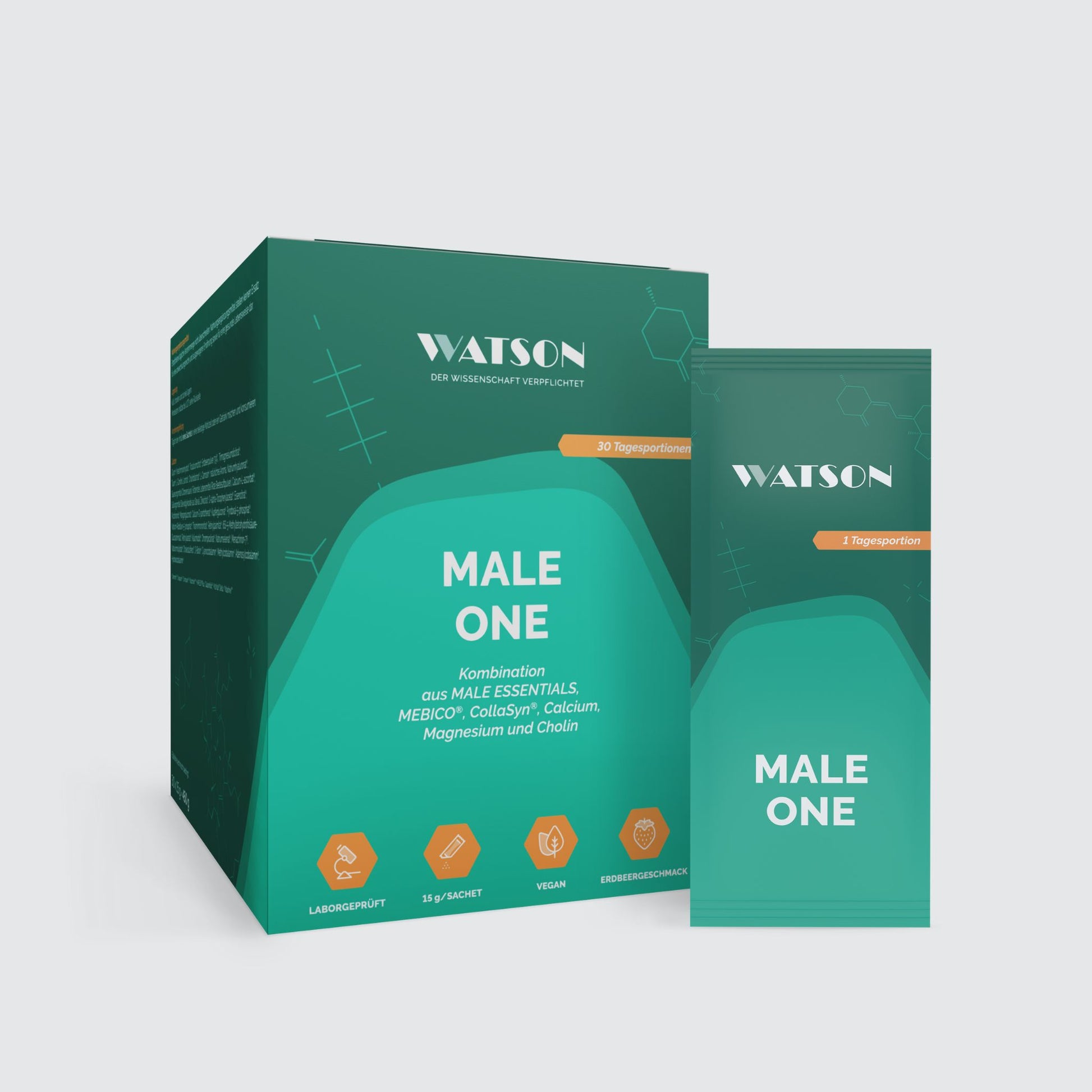 Dieser Multinährstoff stellt in Bezug auf die Nährstoffauswahl die Summe der folgenden Produkte dar: Male Essentials, Calcium, Magnesium, Cholin, MEBICO® und CollaSyn®